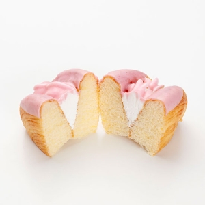 クリームシートを折り込んだリッチなテイストの生地にミルククリームをサンドして、いちごのコーティングでドレスアップ。